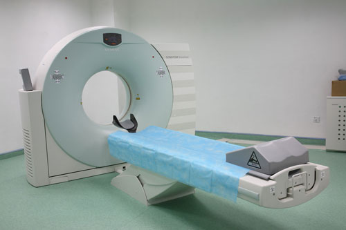 德国西门子双排螺旋CT(电子计算机体层摄影,简称CT),是电子计算机和X线相结合的一项新型诊断技术,该CT机大大超越了一般CT机所具有的功能,采集数据量大,可同时采集多层图像,建立三维图像,可以更加准确的看见病人病变部位。